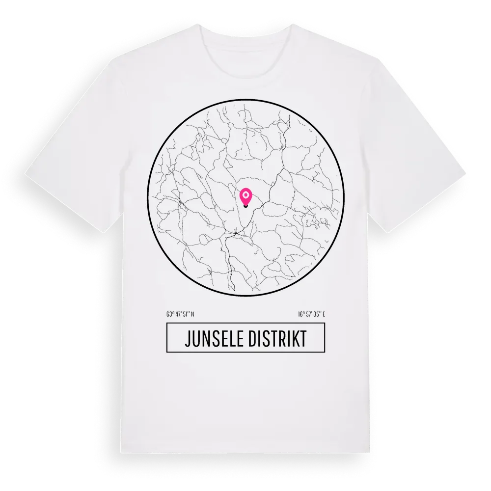 Junsele Distrikt t-shirt är inspirerad av Junsele Distrikt i Västernorrlands län, Sverige. Tröjan är designad för dig som har en speciell koppling till platsen – oavsett om du bor här, har rötterna här eller bara älskar Junsele Distrikt.