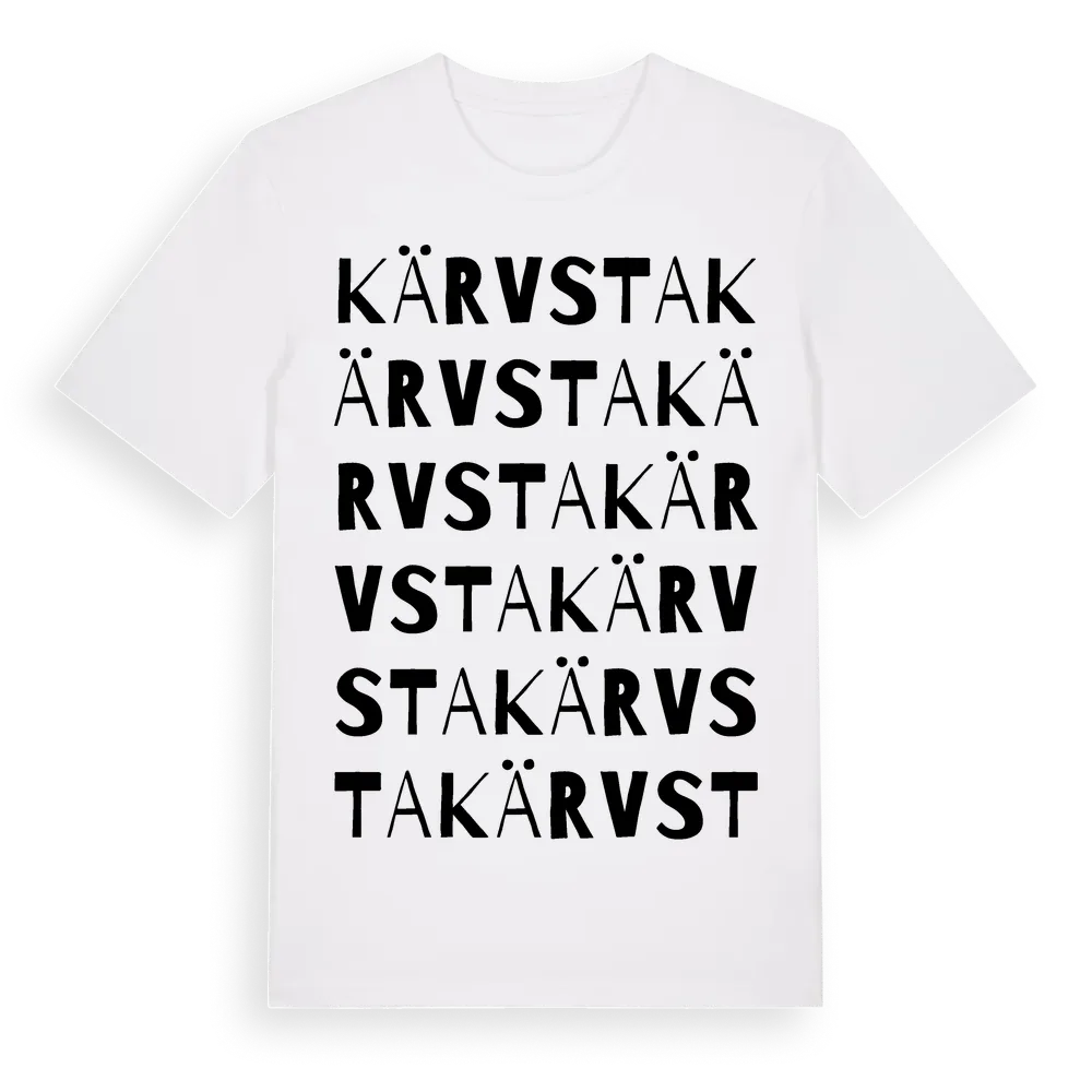 Kärvsta ordlek t-shirt är inspirerad av byn Kärvsta i Västernorrlands län, Sverige. Tröjan är designad för dig som har en speciell koppling till platsen – oavsett om du bor här, har rötterna här eller bara älskar Kärvsta.