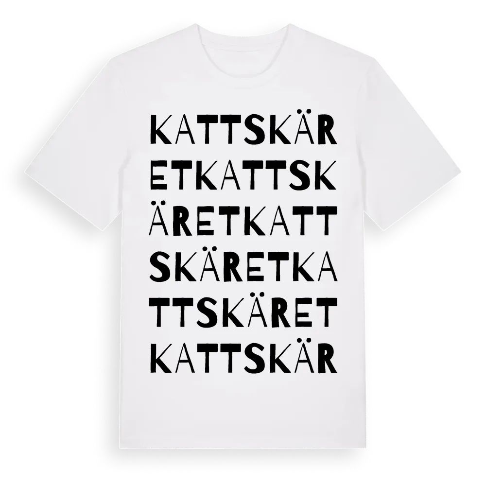 Kattskäret ordlek t-shirt är inspirerad av Kattskäret i Västernorrlands län, Sverige. Tröjan är designad för dig som har en speciell koppling till platsen – oavsett om du bor här, har rötterna här eller bara älskar Kattskäret.
