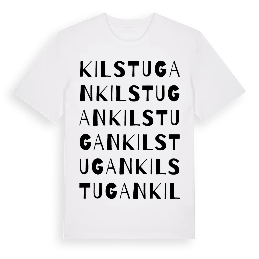 Kilstugan ordlek t-shirt är inspirerad av Kilstugan i Västernorrlands län, Sverige. Tröjan är designad för dig som har en speciell koppling till platsen – oavsett om du bor här, har rötterna här eller bara älskar Kilstugan.