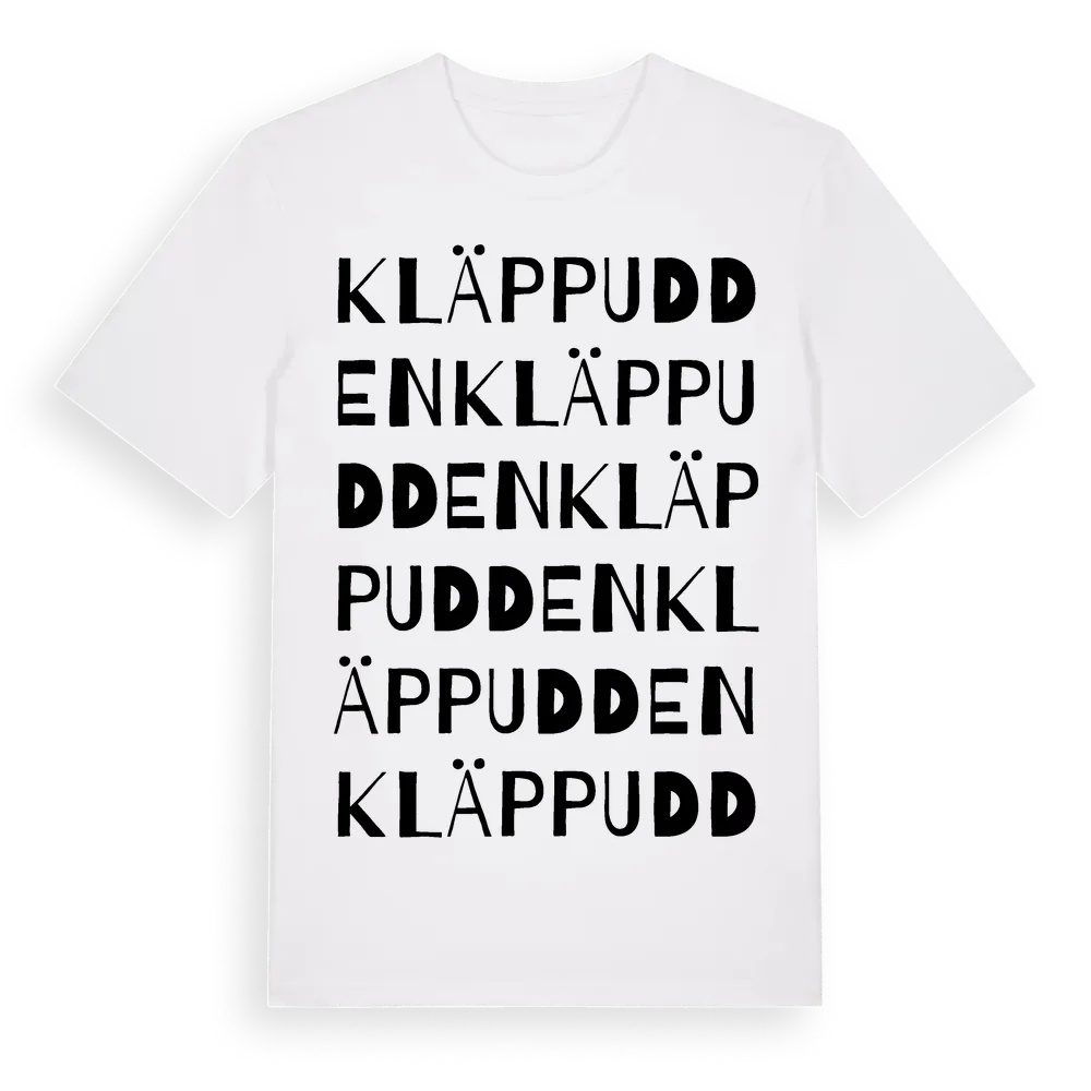 Kläppudden ordlek t-shirt är inspirerad av stadsdelen Kläppudden i Västernorrlands län, Sverige. Tröjan är designad för dig som har en speciell koppling till platsen – oavsett om du bor här, har rötterna här eller bara älskar Kläppudden.