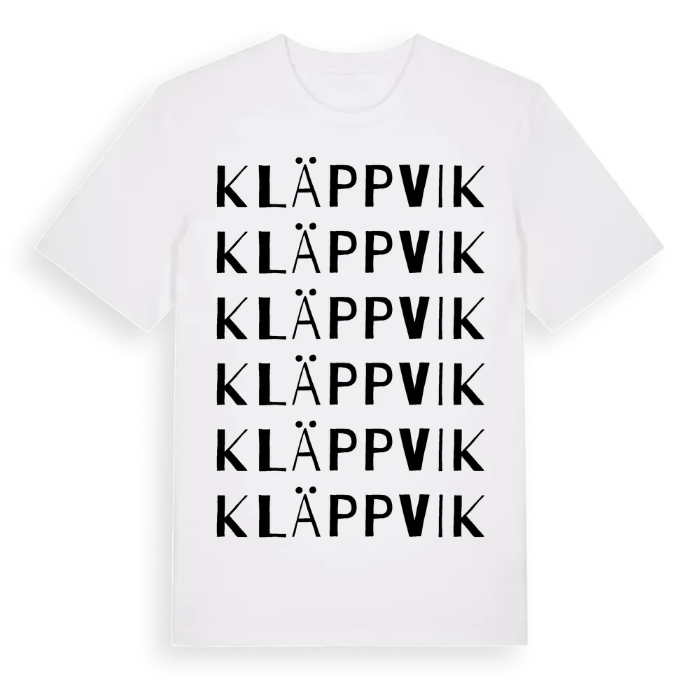 Kläppvik ordlek t-shirt är inspirerad av Kläppvik i Västernorrlands län, Sverige. Tröjan är designad för dig som har en speciell koppling till platsen – oavsett om du bor här, har rötterna här eller bara älskar Kläppvik.