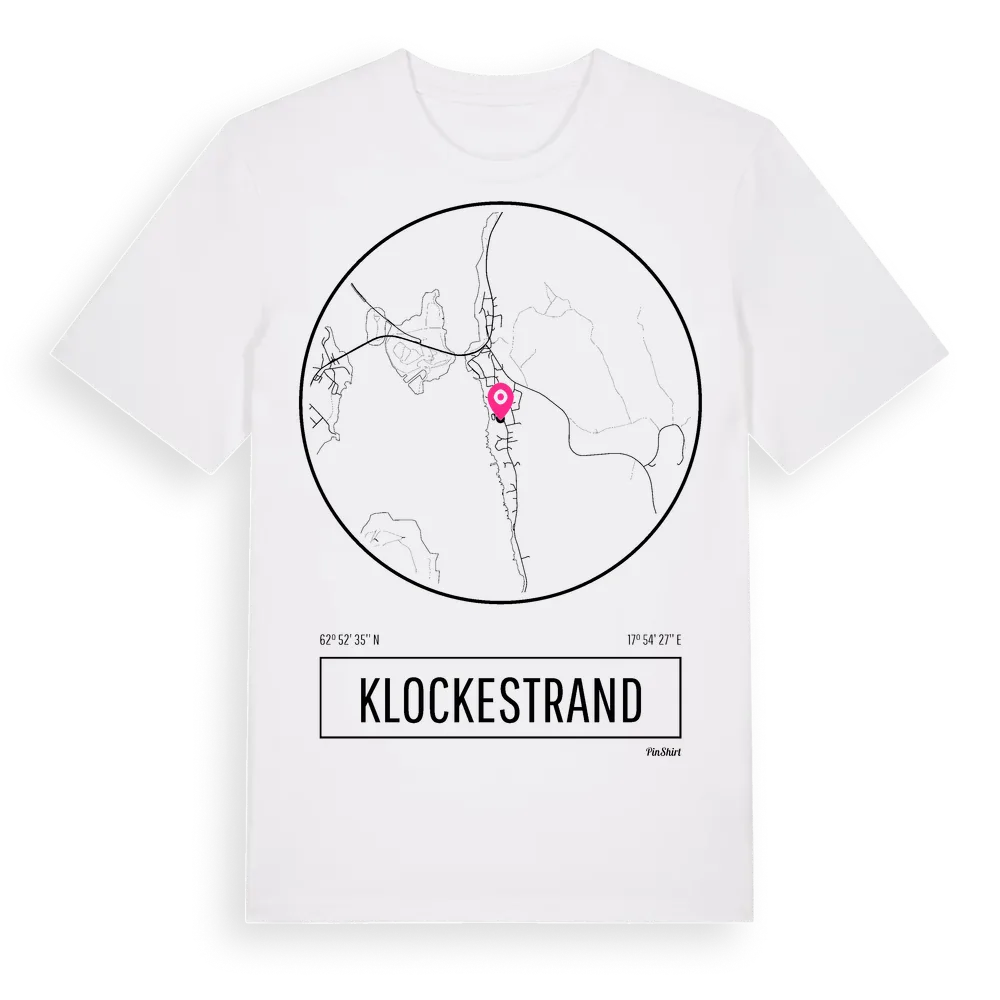 Klockestrand t-shirt är inspirerad av byn Klockestrand i Västernorrlands län, Sverige. Tröjan är designad för dig som har en speciell koppling till platsen – oavsett om du bor här, har rötterna här eller bara älskar Klockestrand.