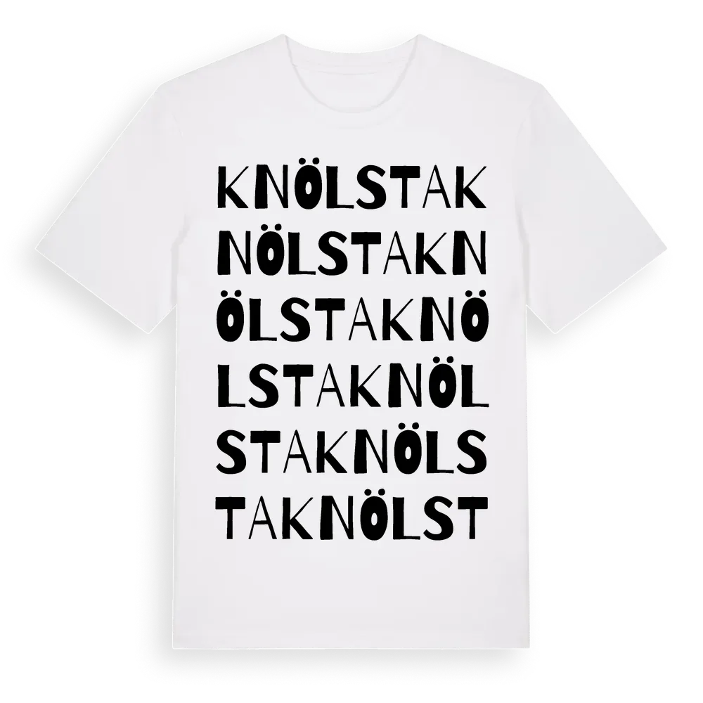 Knölsta ordlek t-shirt är inspirerad av byn Knölsta i Västernorrlands län, Sverige. Tröjan är designad för dig som har en speciell koppling till platsen – oavsett om du bor här, har rötterna här eller bara älskar Knölsta.