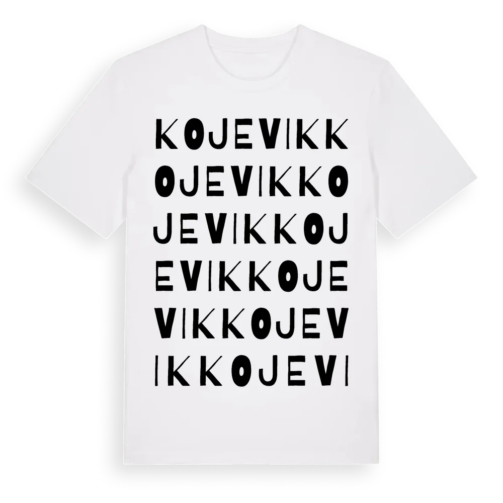 Kojevik ordlek t-shirt är inspirerad av Kojevik i Västernorrlands län, Sverige. Tröjan är designad för dig som har en speciell koppling till platsen – oavsett om du bor här, har rötterna här eller bara älskar Kojevik.