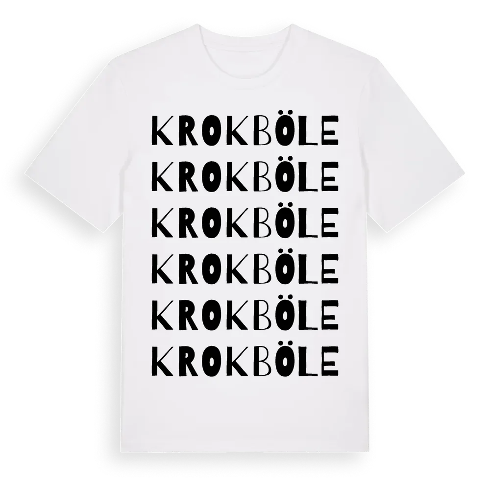 Krokböle ordlek t-shirt är inspirerad av byn Krokböle i Västernorrlands län, Sverige. Tröjan är designad för dig som har en speciell koppling till platsen – oavsett om du bor här, har rötterna här eller bara älskar Krokböle.