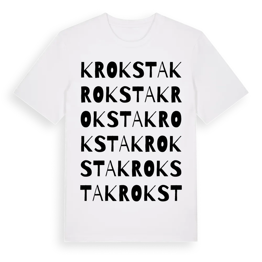 Kroksta ordlek t-shirt är inspirerad av stadsdelen Kroksta i Västernorrlands län, Sverige. Tröjan är designad för dig som har en speciell koppling till platsen – oavsett om du bor här, har rötterna här eller bara älskar Kroksta.
