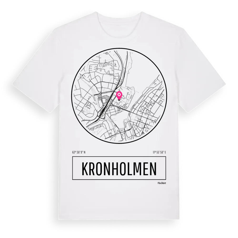 Ett rent, runt tryck med Kronholmens namn. Minimalistiskt och stilrent – perfekt för den som känner platsen utan att skrika det. Premium bomull, unisex – från stadsdelen Kronholmen i Västernorrlands län.