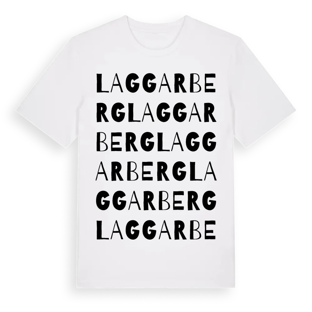 Laggarberg ordlek t-shirt är inspirerad av byn Laggarberg i Västernorrlands län, Sverige. Tröjan är designad för dig som har en speciell koppling till platsen – oavsett om du bor här, har rötterna här eller bara älskar Laggarberg.