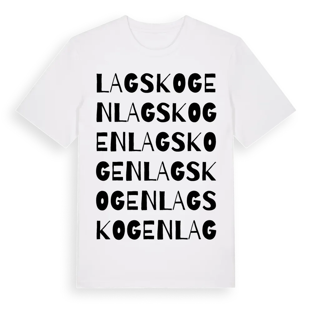 Lagskogen ordlek t-shirt är inspirerad av Lagskogen i Västernorrlands län, Sverige. Tröjan är designad för dig som har en speciell koppling till platsen – oavsett om du bor här, har rötterna här eller bara älskar Lagskogen.