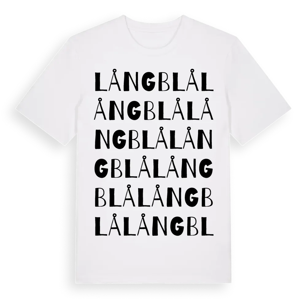Långblå ordlek t-shirt är inspirerad av Långblå i Västernorrlands län, Sverige. Tröjan är designad för dig som har en speciell koppling till platsen – oavsett om du bor här, har rötterna här eller bara älskar Långblå.