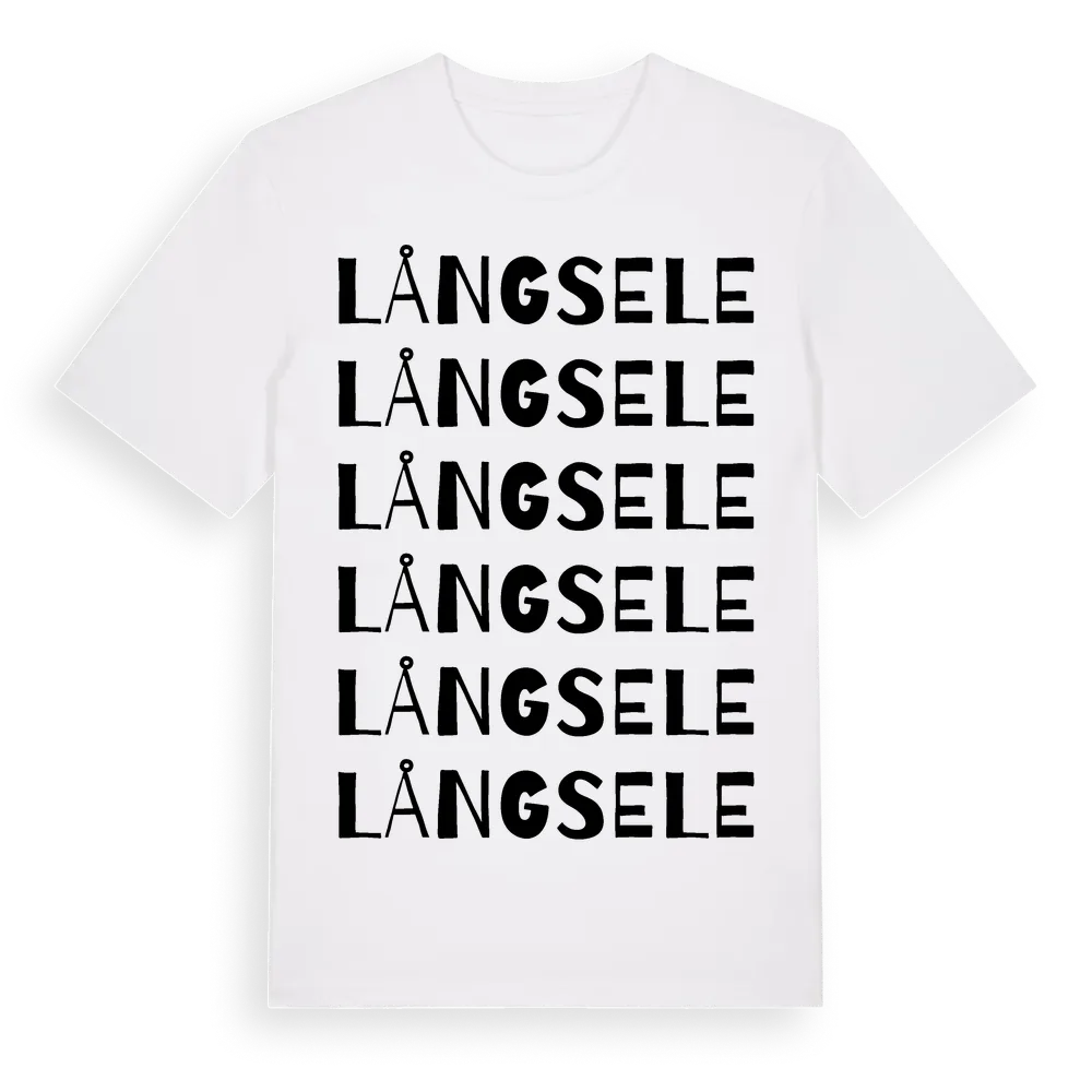 Långsele ordlek t-shirt är inspirerad av byn Långsele i Västernorrlands län, Sverige. Tröjan är designad för dig som har en speciell koppling till platsen – oavsett om du bor här, har rötterna här eller bara älskar Långsele.