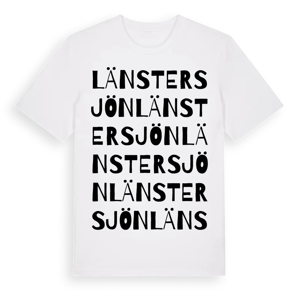 Länstersjön ordlek t-shirt är inspirerad av byn Länstersjön i Västernorrlands län, Sverige. Tröjan är designad för dig som har en speciell koppling till platsen – oavsett om du bor här, har rötterna här eller bara älskar Länstersjön.
