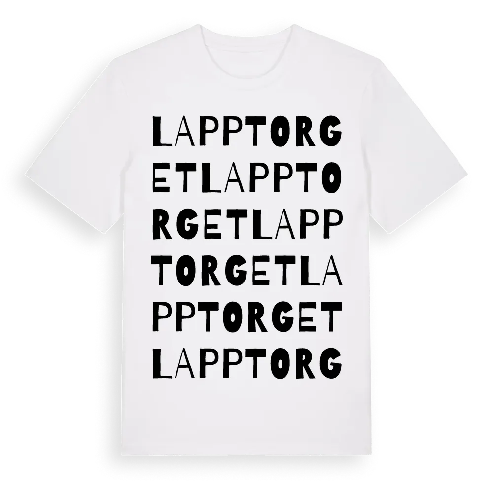 Lapptorget ordlek t-shirt är inspirerad av byn Lapptorget i Västernorrlands län, Sverige. Tröjan är designad för dig som har en speciell koppling till platsen – oavsett om du bor här, har rötterna här eller bara älskar Lapptorget.