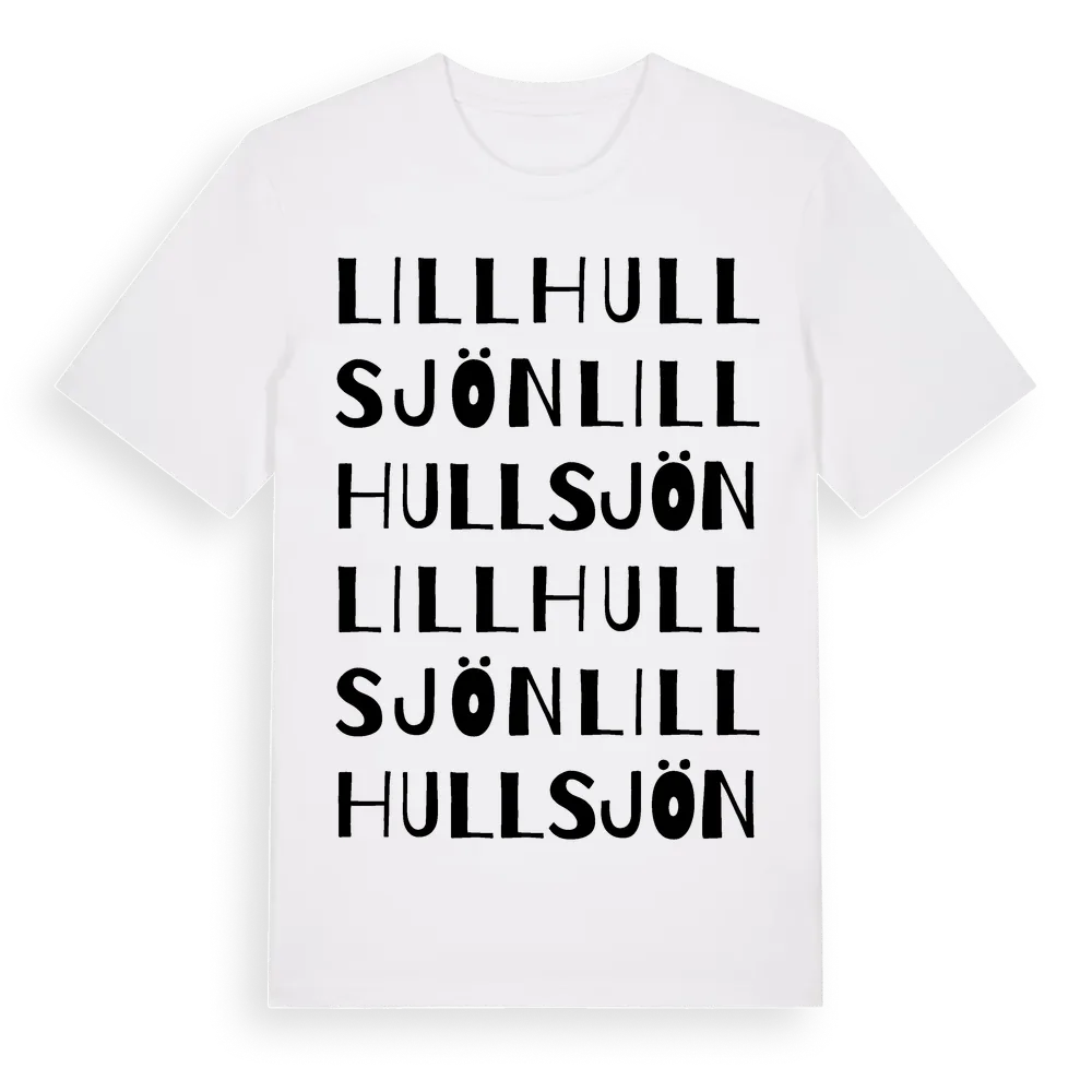 Lillhullsjön ordlek t-shirt är inspirerad av byn Lillhullsjön i Västernorrlands län, Sverige. Tröjan är designad för dig som har en speciell koppling till platsen – oavsett om du bor här, har rötterna här eller bara älskar Lillhullsjön.