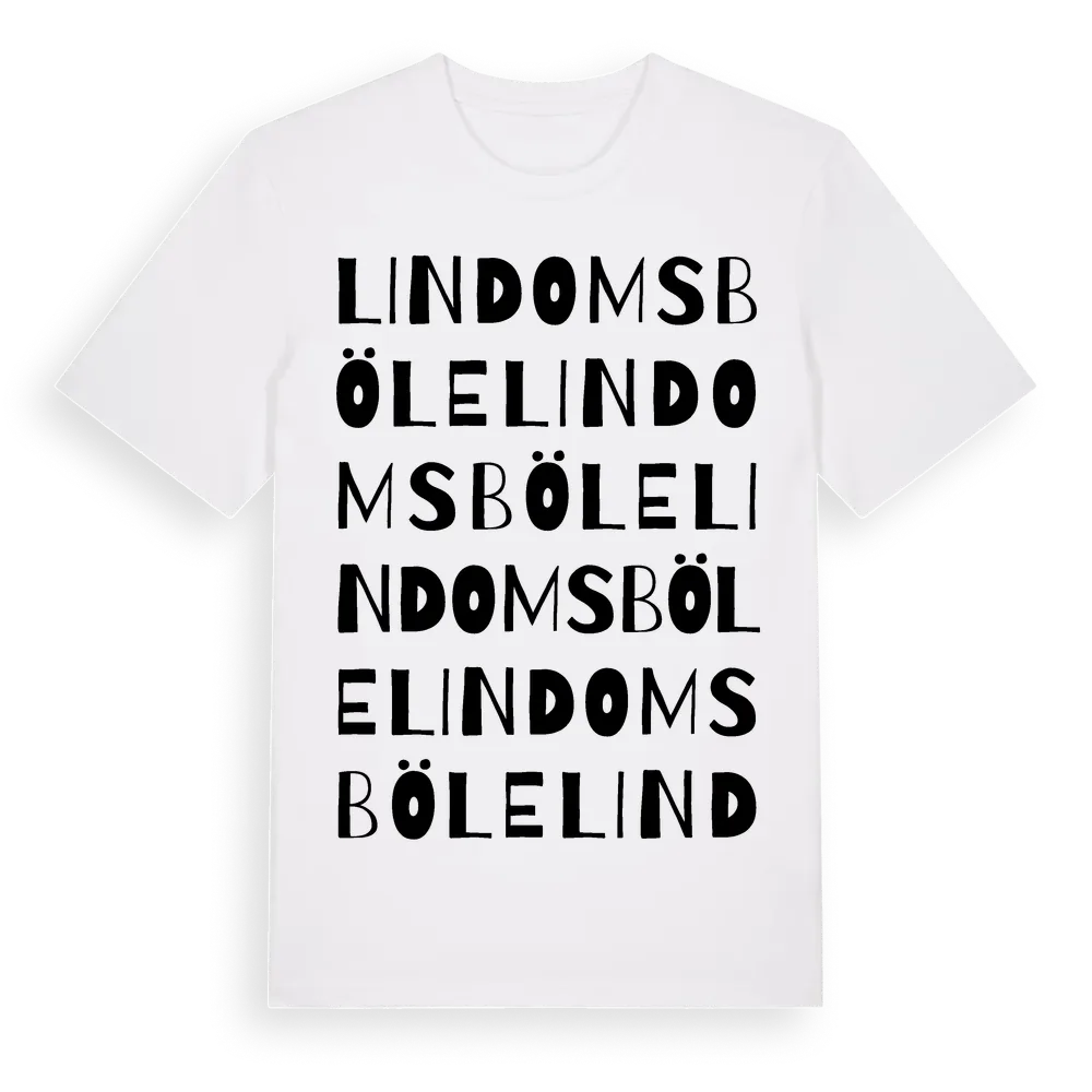 Lindomsböle ordlek t-shirt är inspirerad av byn Lindomsböle i Västernorrlands län, Sverige. Tröjan är designad för dig som har en speciell koppling till platsen – oavsett om du bor här, har rötterna här eller bara älskar Lindomsböle.