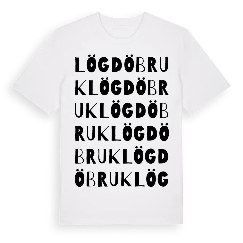 Lögdö Bruk ordlek t-shirt är inspirerad av byn Lögdö Bruk i Västernorrlands län, Sverige. Tröjan är designad för dig som har en speciell koppling till platsen – oavsett om du bor här, har rötterna här eller bara älskar Lögdö Bruk.