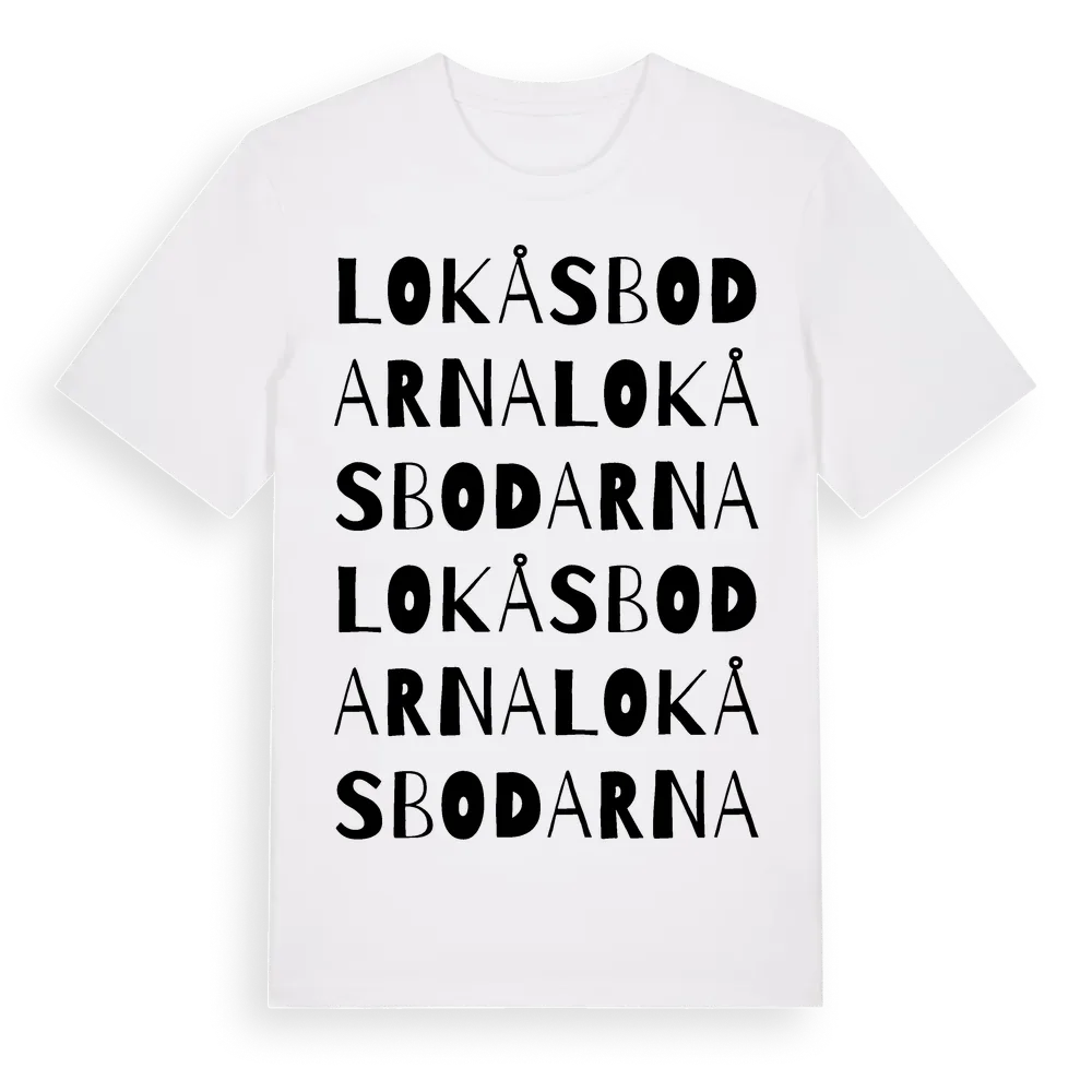Lokåsbodarna ordlek t-shirt är inspirerad av Lokåsbodarna i Västernorrlands län, Sverige. Tröjan är designad för dig som har en speciell koppling till platsen – oavsett om du bor här, har rötterna här eller bara älskar Lokåsbodarna.