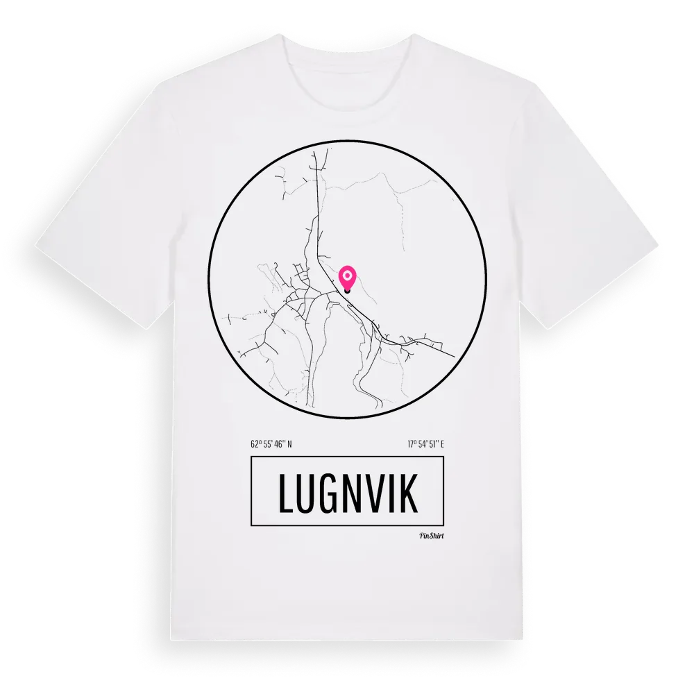 Lugnvik t-shirt är inspirerad av byn Lugnvik i Västernorrlands län, Sverige. Tröjan är designad för dig som har en speciell koppling till platsen – oavsett om du bor här, har rötterna här eller bara älskar Lugnvik.