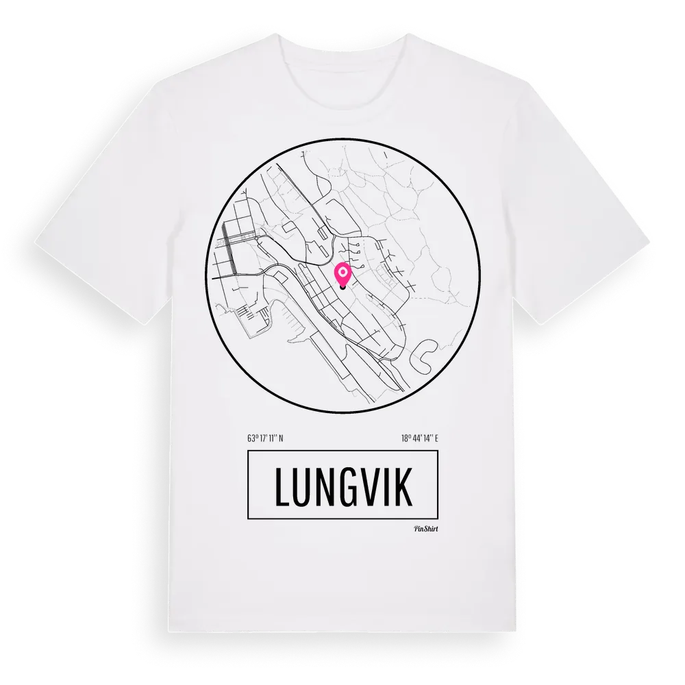 Lungvik t-shirt är inspirerad av stadsdelen Lungvik i Västernorrlands län, Sverige. Tröjan är designad för dig som har en speciell koppling till platsen – oavsett om du bor här, har rötterna här eller bara älskar Lungvik.