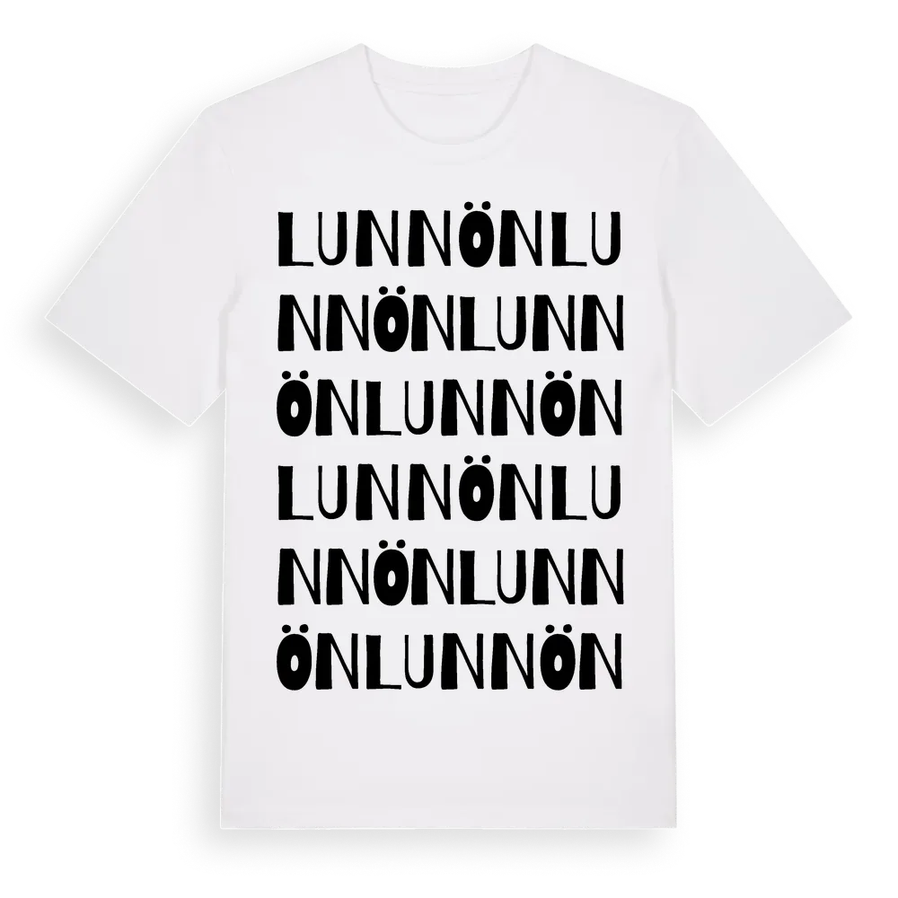 Lunnön ordlek t-shirt är inspirerad av byn Lunnön i Västernorrlands län, Sverige. Tröjan är designad för dig som har en speciell koppling till platsen – oavsett om du bor här, har rötterna här eller bara älskar Lunnön.