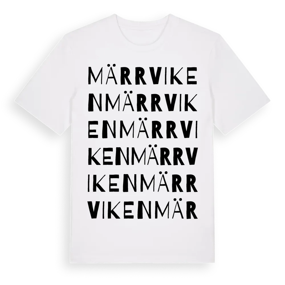 Märrviken ordlek t-shirt är inspirerad av byn Märrviken i Västernorrlands län, Sverige. Tröjan är designad för dig som har en speciell koppling till platsen – oavsett om du bor här, har rötterna här eller bara älskar Märrviken.
