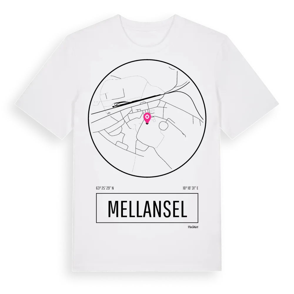 Mellansel t-shirt är inspirerad av byn Mellansel i Västernorrlands län, Sverige. Tröjan är designad för dig som har en speciell koppling till platsen – oavsett om du bor här, har rötterna här eller bara älskar Mellansel.