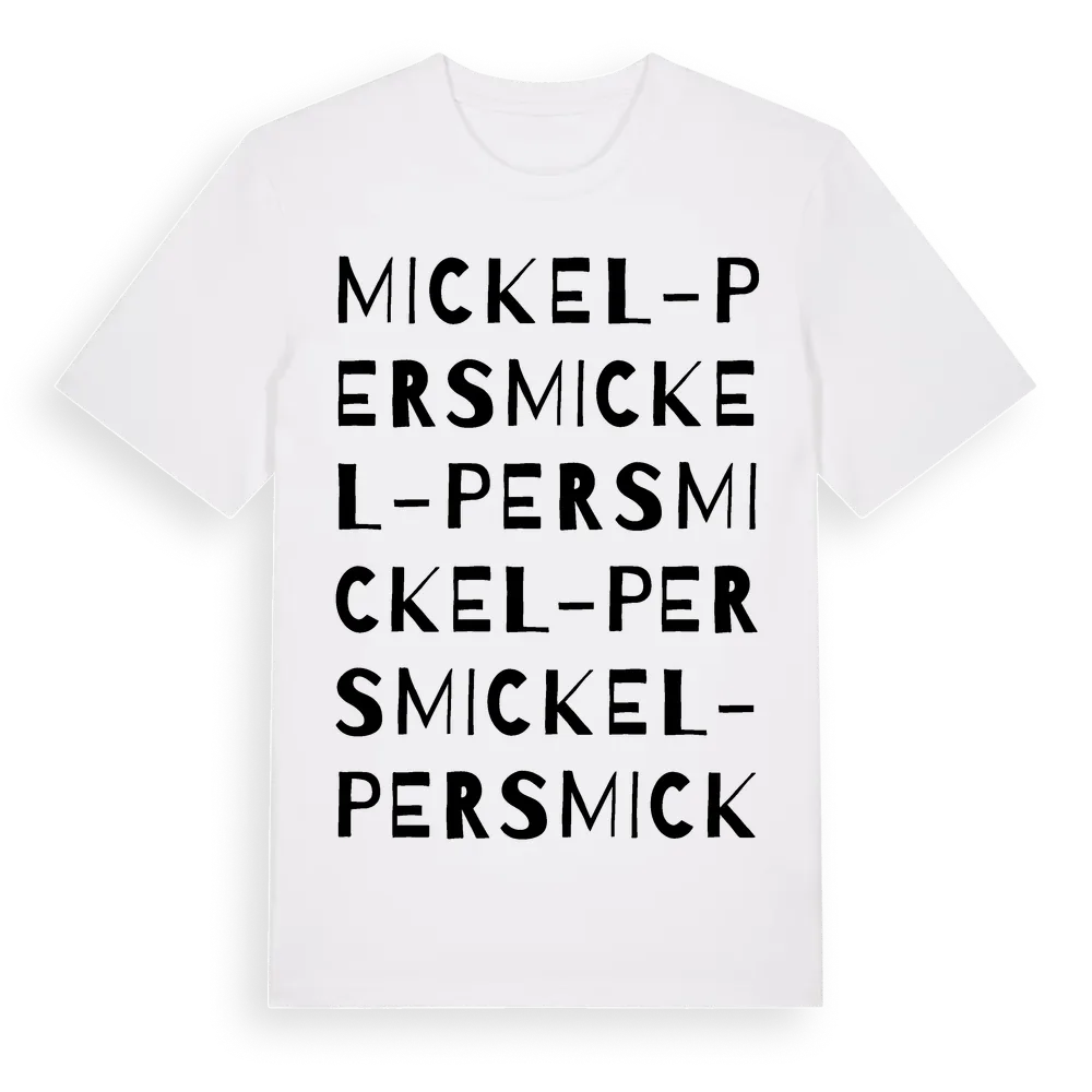 Mickel-Pers ordlek t-shirt är inspirerad av byn Mickel-Pers i Västernorrlands län, Sverige. Tröjan är designad för dig som har en speciell koppling till platsen – oavsett om du bor här, har rötterna här eller bara älskar Mickel-Pers.