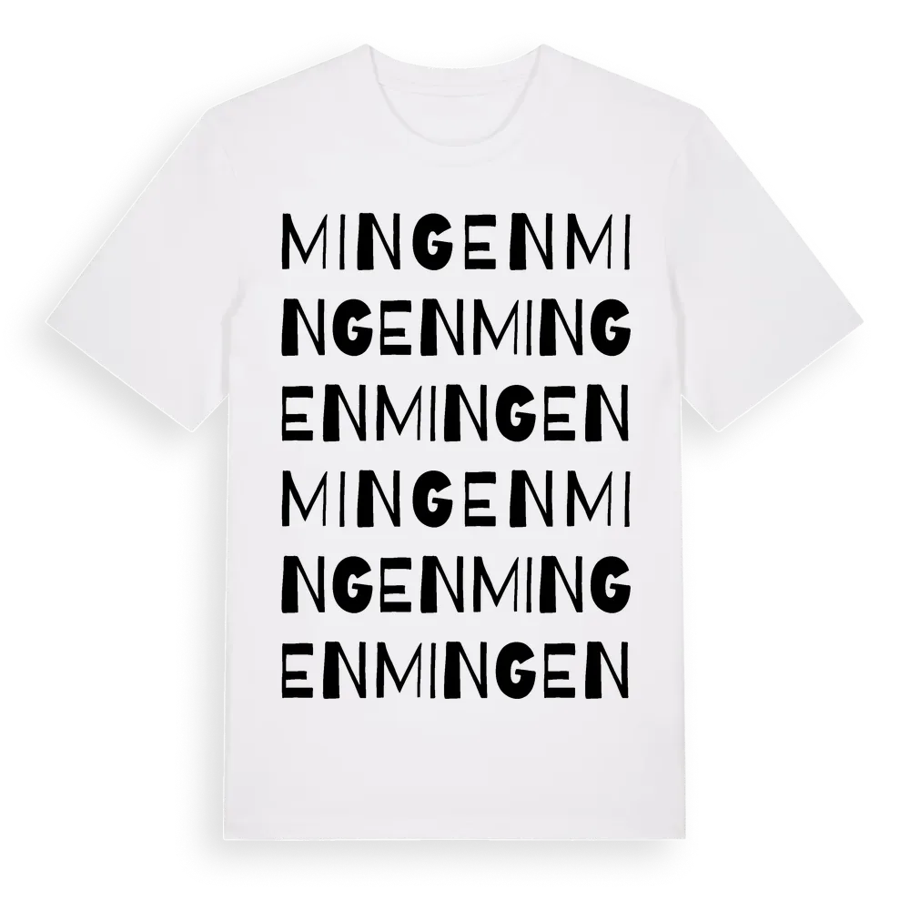 Mingen ordlek t-shirt är inspirerad av byn Mingen i Västernorrlands län, Sverige. Tröjan är designad för dig som har en speciell koppling till platsen – oavsett om du bor här, har rötterna här eller bara älskar Mingen.