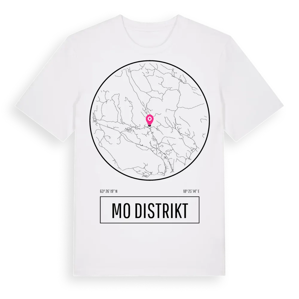 Mo Distrikt t-shirt är inspirerad av Mo Distrikt i Västernorrlands län, Sverige. Tröjan är designad för dig som har en speciell koppling till platsen – oavsett om du bor här, har rötterna här eller bara älskar Mo Distrikt.