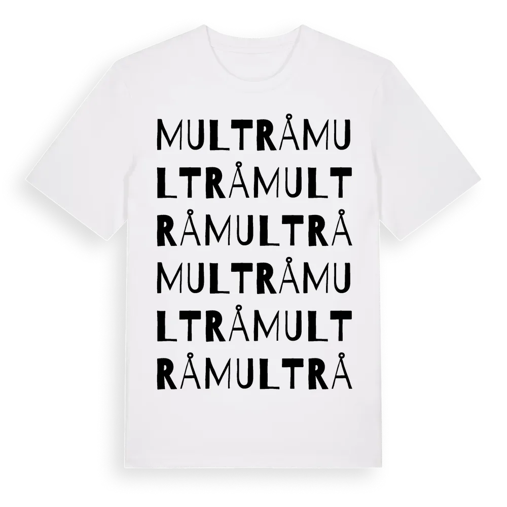 Multrå ordlek t-shirt är inspirerad av byn Multrå i Västernorrlands län, Sverige. Tröjan är designad för dig som har en speciell koppling till platsen – oavsett om du bor här, har rötterna här eller bara älskar Multrå.