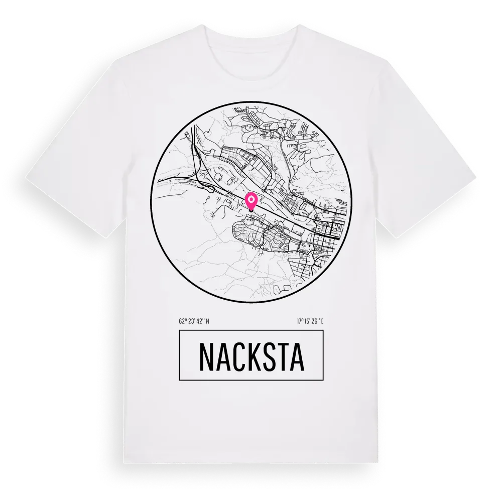 Nacksta t-shirt är inspirerad av Nacksta i Västernorrlands län, Sverige. Tröjan är designad för dig som har en speciell koppling till platsen – oavsett om du bor här, har rötterna här eller bara älskar Nacksta.
