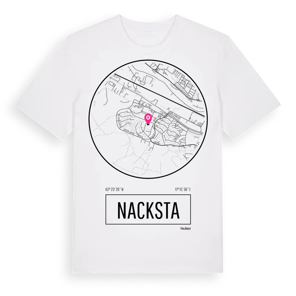 Nacksta t-shirt är inspirerad av stadsdelen Nacksta i Västernorrlands län, Sverige. Tröjan är designad för dig som har en speciell koppling till platsen – oavsett om du bor här, har rötterna här eller bara älskar Nacksta.