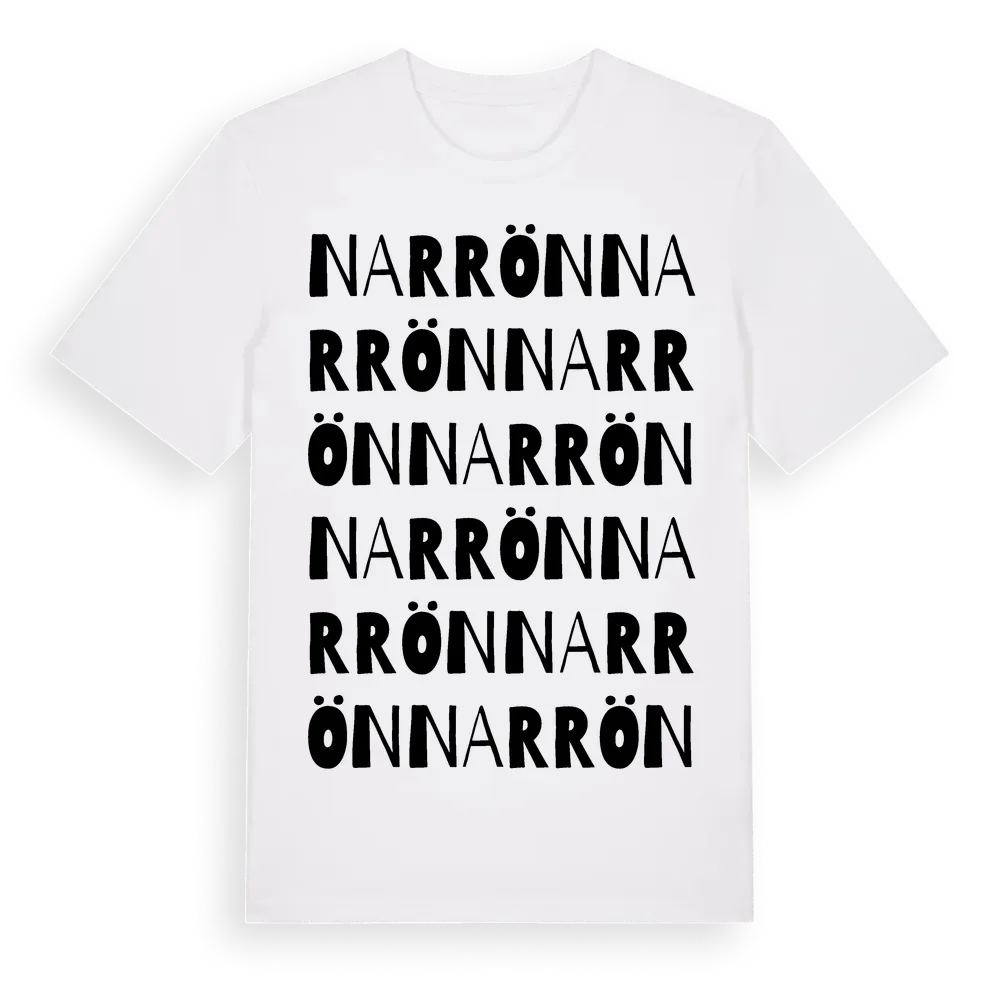 Narrön ordlek t-shirt är inspirerad av Narrön i Västernorrlands län, Sverige. Tröjan är designad för dig som har en speciell koppling till platsen – oavsett om du bor här, har rötterna här eller bara älskar Narrön.