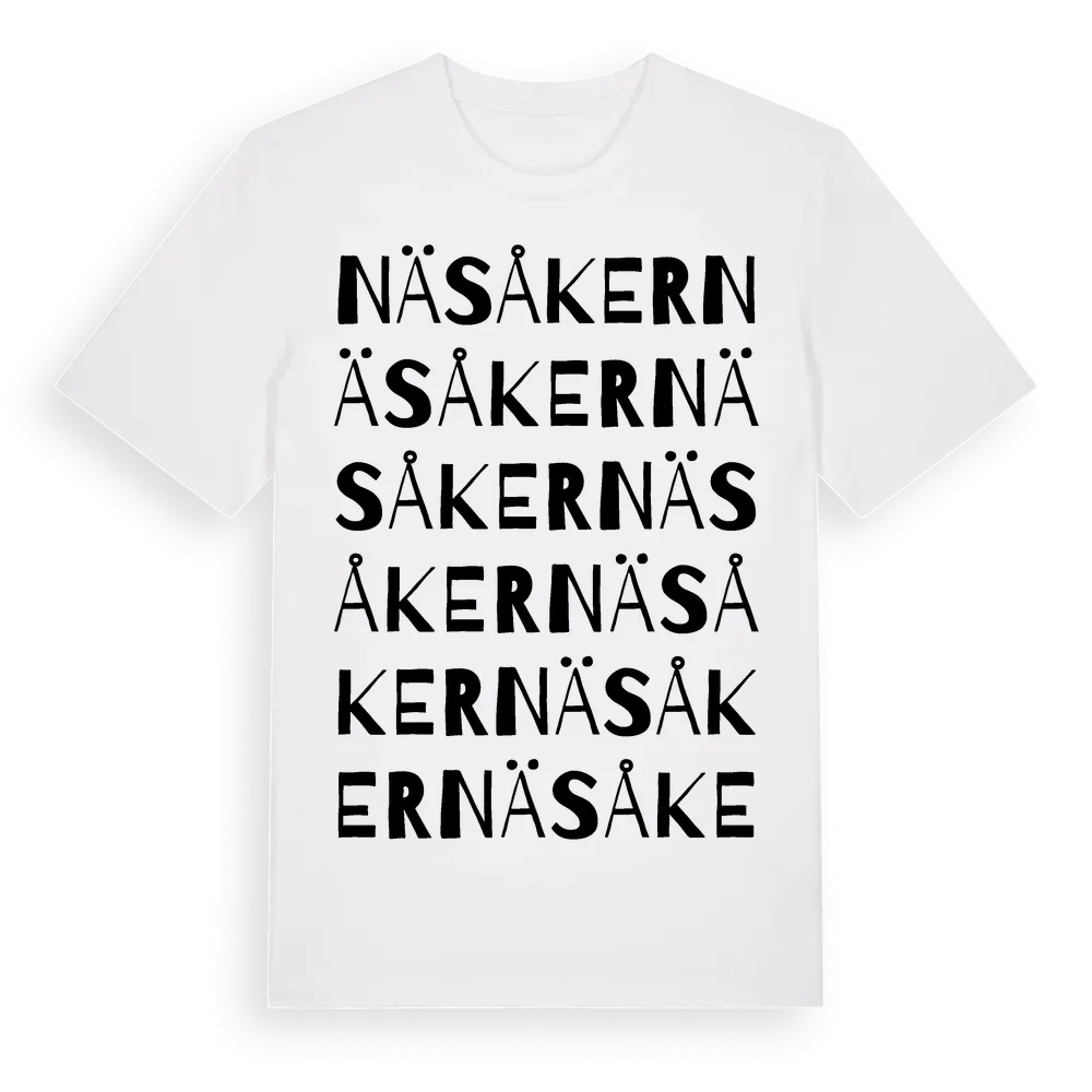 Näsåker ordlek t-shirt är inspirerad av byn Näsåker i Västernorrlands län, Sverige. Tröjan är designad för dig som har en speciell koppling till platsen – oavsett om du bor här, har rötterna här eller bara älskar Näsåker.