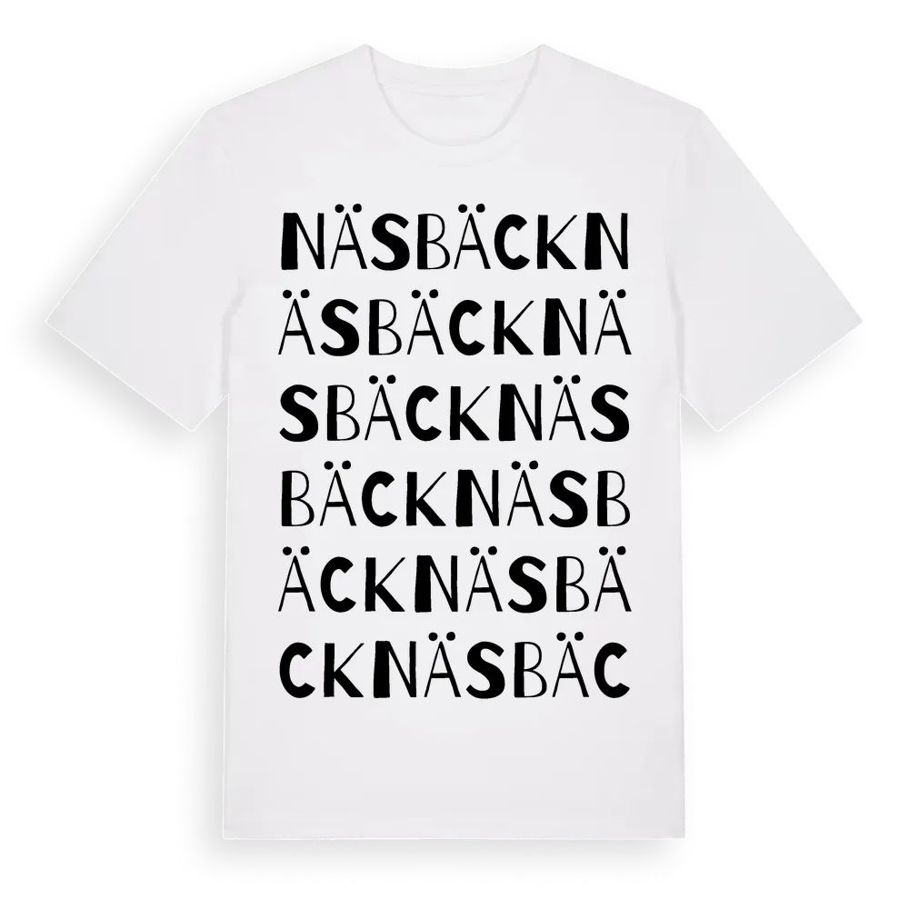 Näsbäck ordlek t-shirt är inspirerad av Näsbäck i Västernorrlands län, Sverige. Tröjan är designad för dig som har en speciell koppling till platsen – oavsett om du bor här, har rötterna här eller bara älskar Näsbäck.