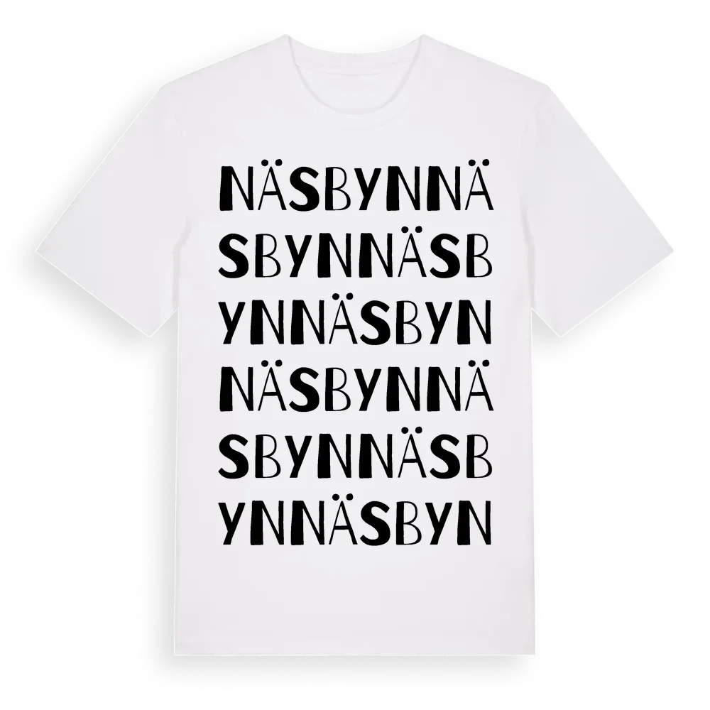 Näsbyn ordlek t-shirt är inspirerad av byn Näsbyn i Västernorrlands län, Sverige. Tröjan är designad för dig som har en speciell koppling till platsen – oavsett om du bor här, har rötterna här eller bara älskar Näsbyn.