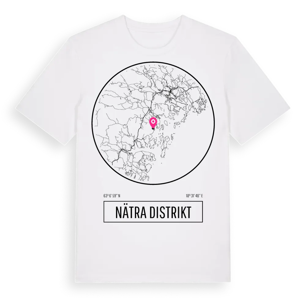Nätra Distrikt t-shirt är inspirerad av Nätra Distrikt i Västernorrlands län, Sverige. Tröjan är designad för dig som har en speciell koppling till platsen – oavsett om du bor här, har rötterna här eller bara älskar Nätra Distrikt.