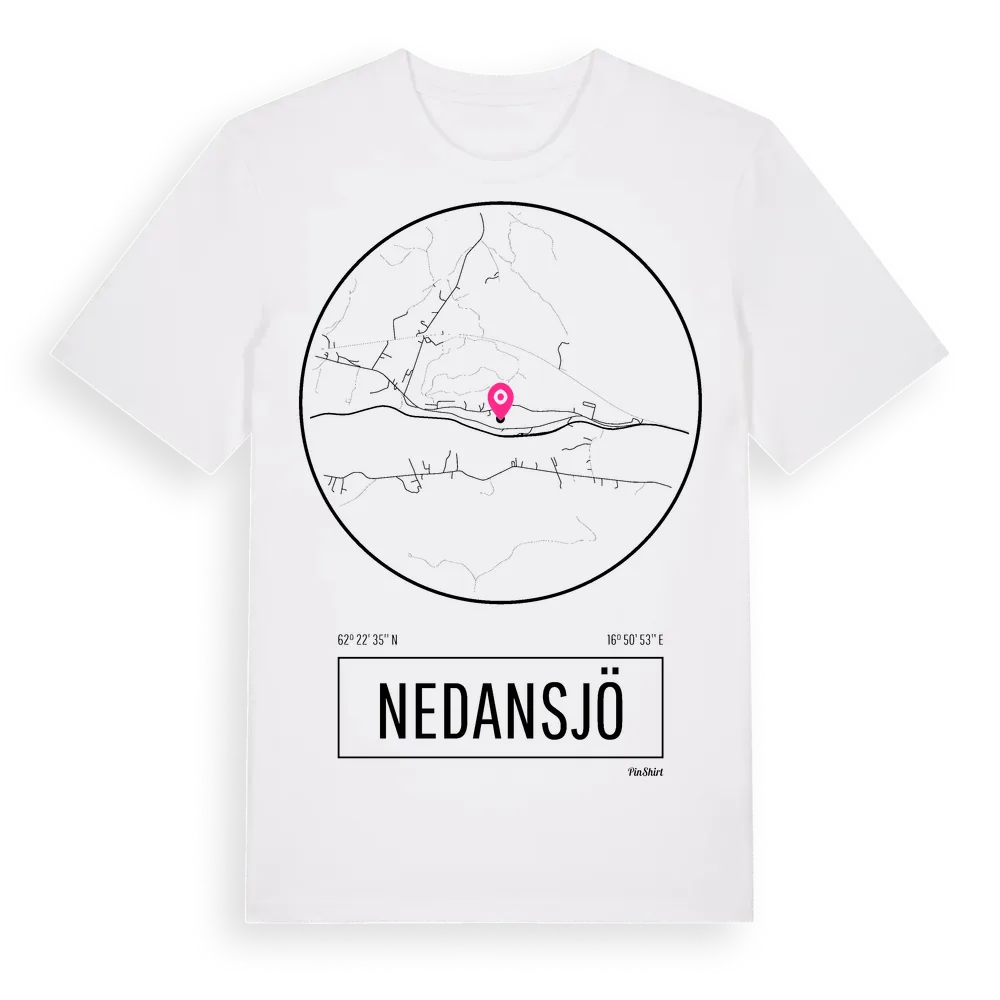 Nedansjö t-shirt är inspirerad av byn Nedansjö i Västernorrlands län, Sverige. Tröjan är designad för dig som har en speciell koppling till platsen – oavsett om du bor här, har rötterna här eller bara älskar Nedansjö.