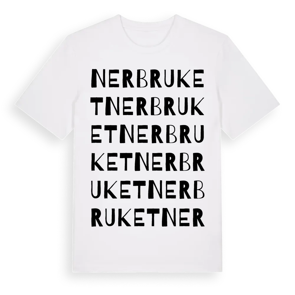 Nerbruket ordlek t-shirt är inspirerad av Nerbruket i Västernorrlands län, Sverige. Tröjan är designad för dig som har en speciell koppling till platsen – oavsett om du bor här, har rötterna här eller bara älskar Nerbruket.
