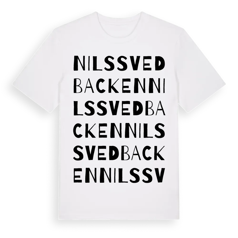 Nilssvedbacken ordlek t-shirt är inspirerad av Nilssvedbacken i Västernorrlands län, Sverige. Tröjan är designad för dig som har en speciell koppling till platsen – oavsett om du bor här, har rötterna här eller bara älskar Nilssvedbacken.