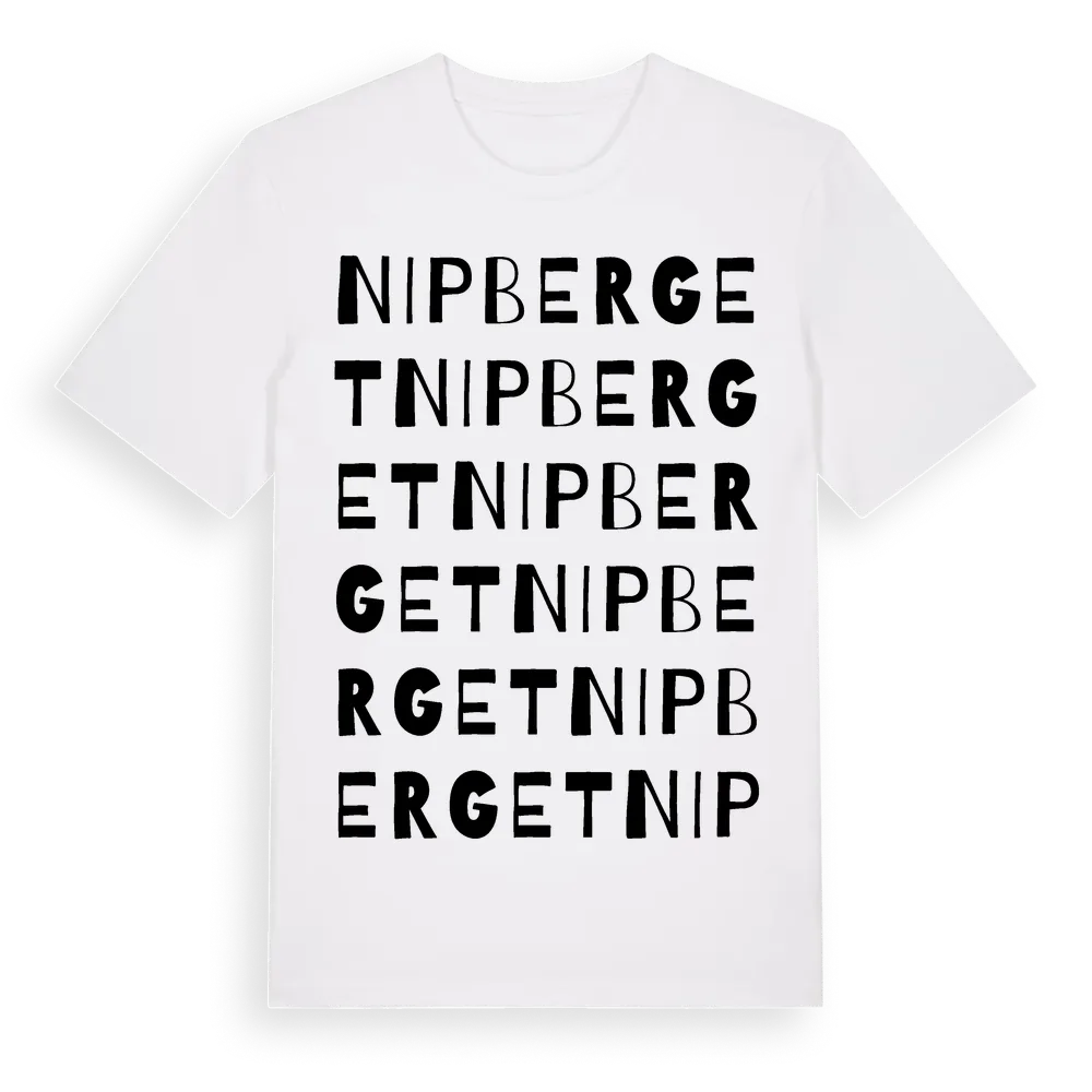 En ordlek byggd på Nipbergets namn. Subtilt och klurig – ett motiv som bara de som verkligen känner platsen fullt ut förstår. Premium bomull, unisex – från Nipberget i Västernorrlands län.