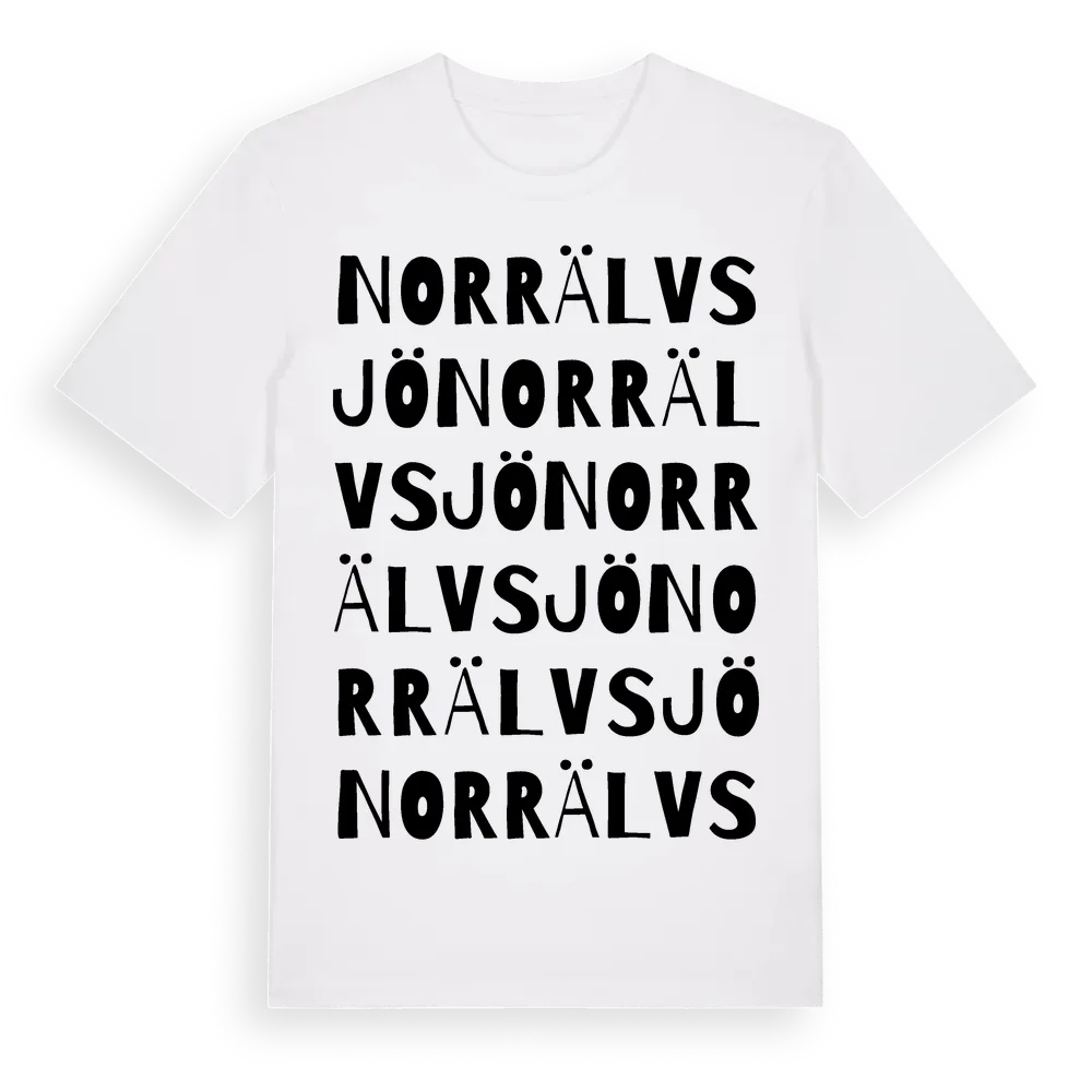Norrälvsjö ordlek t-shirt är inspirerad av byn Norrälvsjö i Västernorrlands län, Sverige. Tröjan är designad för dig som har en speciell koppling till platsen – oavsett om du bor här, har rötterna här eller bara älskar Norrälvsjö.