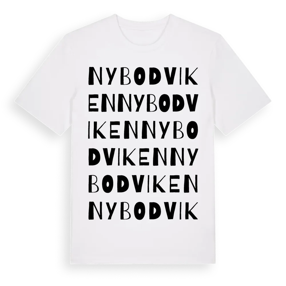 Nybodviken ordlek t-shirt är inspirerad av Nybodviken i Västernorrlands län, Sverige. Tröjan är designad för dig som har en speciell koppling till platsen – oavsett om du bor här, har rötterna här eller bara älskar Nybodviken.