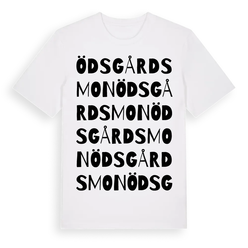 Ödsgårdsmon ordlek t-shirt är inspirerad av byn Ödsgårdsmon i Västernorrlands län, Sverige. Tröjan är designad för dig som har en speciell koppling till platsen – oavsett om du bor här, har rötterna här eller bara älskar Ödsgårdsmon.