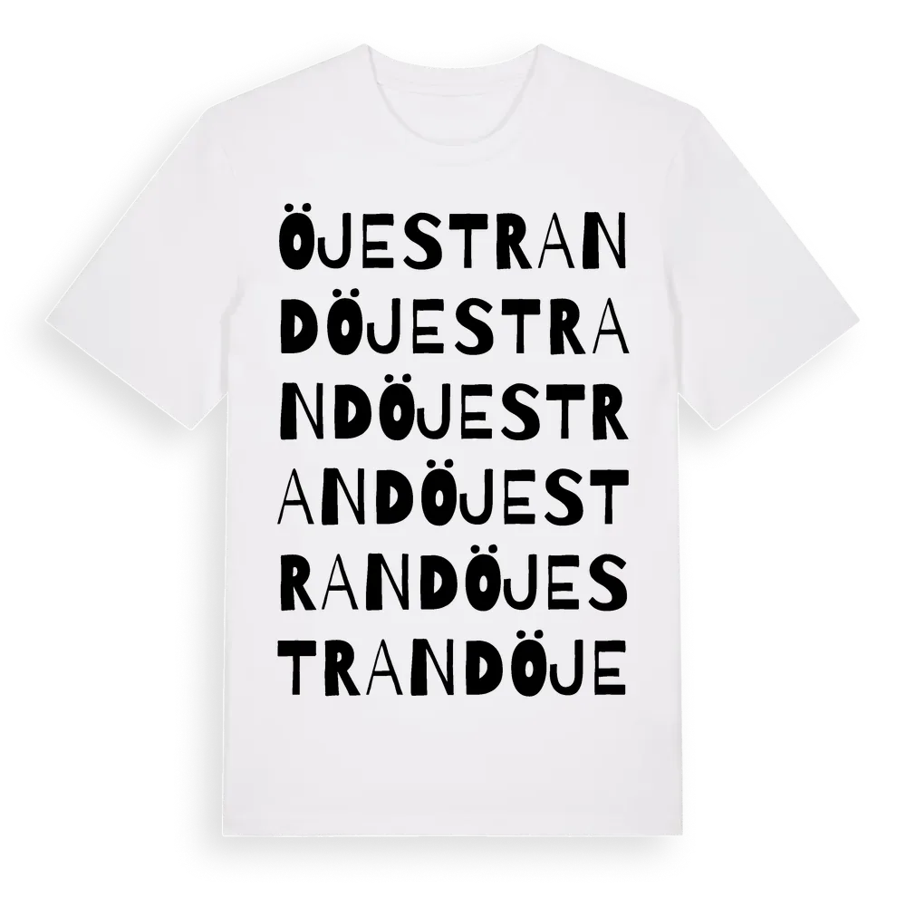 Öjestrand ordlek t-shirt är inspirerad av Öjestrand i Västernorrlands län, Sverige. Tröjan är designad för dig som har en speciell koppling till platsen – oavsett om du bor här, har rötterna här eller bara älskar Öjestrand.