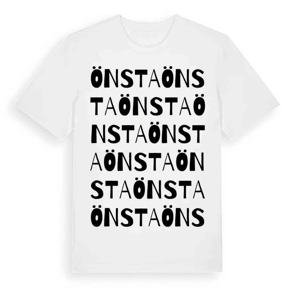 En ordlek byggd på Önstas namn. Subtilt och klurig – ett motiv som bara de som verkligen känner platsen fullt ut förstår. Premium bomull, unisex – från byn Önsta i Västernorrlands län.