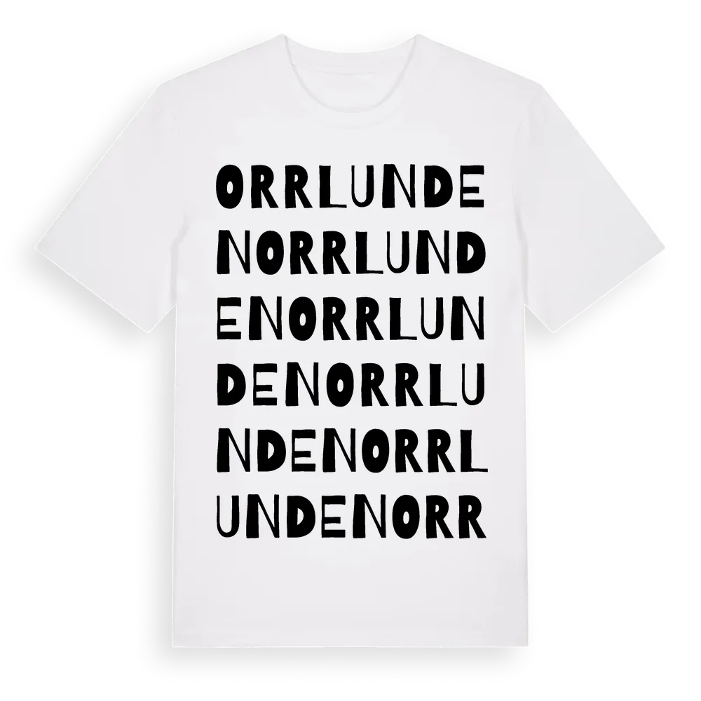 Orrlunden ordlek t-shirt är inspirerad av byn Orrlunden i Västernorrlands län, Sverige. Tröjan är designad för dig som har en speciell koppling till platsen – oavsett om du bor här, har rötterna här eller bara älskar Orrlunden.