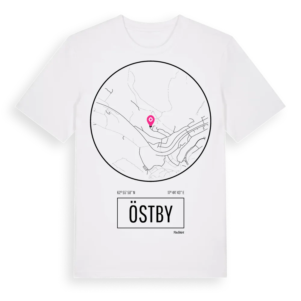 Östby t-shirt är inspirerad av stadsdelen Östby i Västernorrlands län, Sverige. Tröjan är designad för dig som har en speciell koppling till platsen – oavsett om du bor här, har rötterna här eller bara älskar Östby.