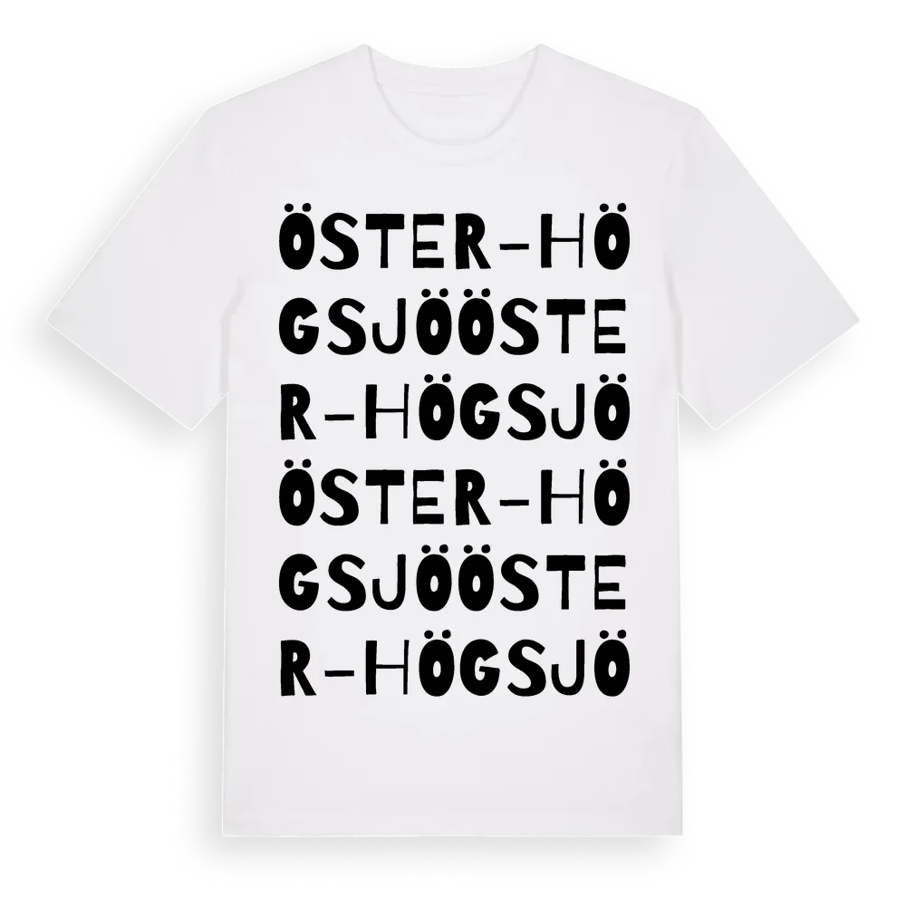 Öster-Högsjö ordlek t-shirt är inspirerad av byn Öster-Högsjö i Västernorrlands län, Sverige. Tröjan är designad för dig som har en speciell koppling till platsen – oavsett om du bor här, har rötterna här eller bara älskar Öster-Högsjö.